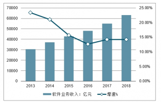 2013-2018年中國(guó)軟件業(yè)務(wù)收入及增長(zhǎng)走勢(shì)