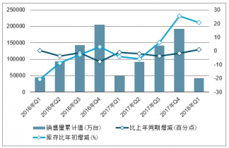 2016-2018Q1中國移動(dòng)通信手持機(jī)(手機(jī))銷量情況