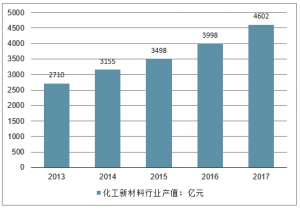2013-2017年中國化工新材料行業(yè)產(chǎn)值走勢