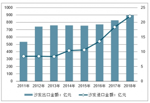 2011-2018年中國沙發(fā)行業(yè)進出口金額