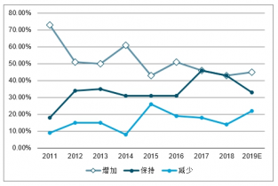2011-2019 年廣告主對當年營銷推廣費用占比的預期