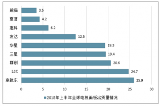 2018年上半年全球電視面板出貨量情況