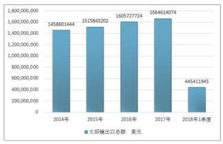 2016年我國太陽鏡出口總額1605727724美元,2017年出口總額1664614074美元;2018年1季度出口總額445411945美元。
