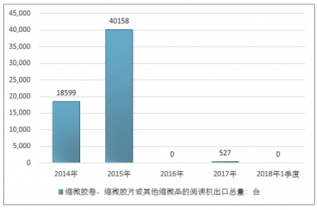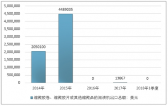 2016年我國(guó)縮微膠卷、縮微膠片或其他縮微品的閱讀機(jī)出口總額-美元,2017年出口總額13867美元;2018年1季度出口總額-美元。