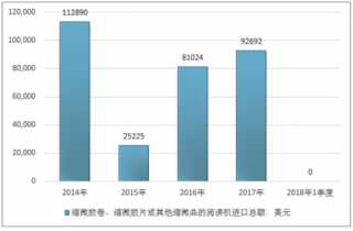 2016年我國(guó)縮微膠卷、縮微膠片或其他縮微品的閱讀機(jī)進(jìn)口總額81024美元,2017年進(jìn)口總額92692美元;2018年1季度進(jìn)口總額-美元。