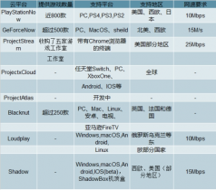云游戲平臺(tái)多依附巨頭公司,在技術(shù)、內(nèi)容和算力資源獲取都更加方便。2019年10月,谷歌、微軟以及EA在陸續(xù)公布了自己的云游戲計(jì)劃。歐洲市場的主要云游戲平臺(tái)有Blacknut、Loudplay以及Shadow。