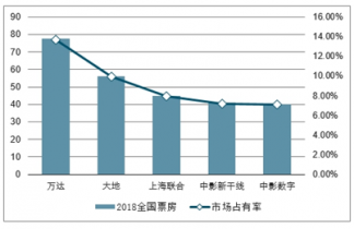 2018全國排名TOP5院線的市場占有率(票房單位:億元)