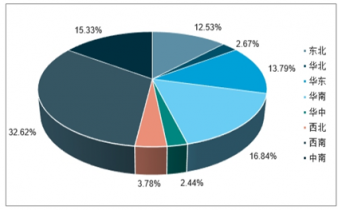 2019年,西南區域的的門店數量最多,其占比達32.62%;其次是華南區域、中南區域和華東區域,其占比分別為16.84%、15.33%、13.79%。