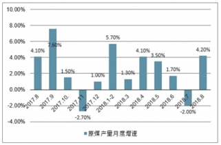 2017年-2018年8月中國規(guī)模以上工工業(yè)原煤產量月度增速走勢