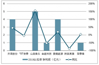2019年一季度焦炭為主的公司扣非凈利潤及同比增長走勢