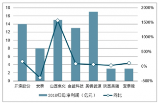 2018年焦炭為主的公司歸母凈利潤及同比變化