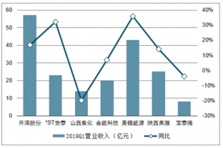 2019年一季度焦炭為主的公司營業(yè)收入及同比增長走勢