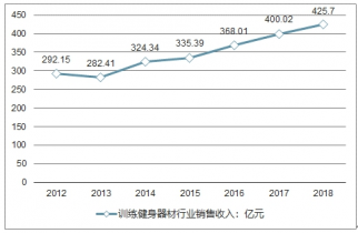 2012-2018年中國訓練健身器材市場銷售收入走勢