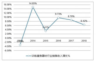 2013-2018年中國訓練健身器材市場銷售收入增長走勢