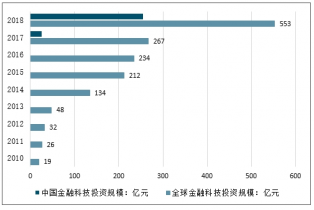 2010-2018年全球及中國金融科技投資規模走勢