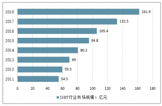 “十三五“期間,國(guó)內(nèi)IGBT國(guó)產(chǎn)化加速,IGBT需求迅猛發(fā)展,到2019年,國(guó)內(nèi)IGBT市場(chǎng)規(guī)模達(dá)161.9億元。