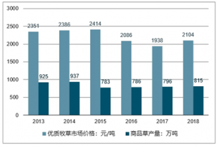 2013-2018年中國商品草行業(yè)產(chǎn)量及質(zhì)牧草市場價格走勢