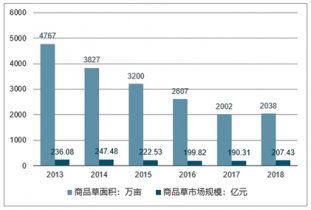 2013-2018年中國商品草種植面積及優(yōu)質(zhì)牧草市場需求規(guī)模走勢