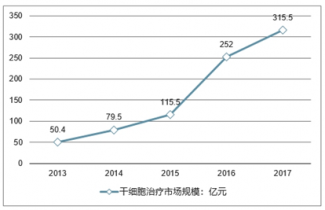 2017年我國干細胞治療市場規(guī)模達到315.5億元,同比增長25.2%,未來幾年行業(yè)還將快速發(fā)展,市場需求大,前景廣闊。