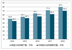 2014-2018年我國高吸水性樹脂產銷量走勢
