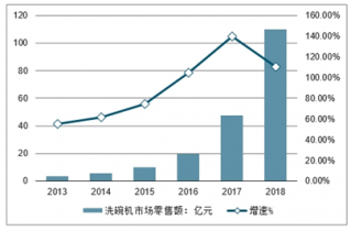 2013-2018年中國洗碗機市場零售額統(tǒng)計及增長情況
