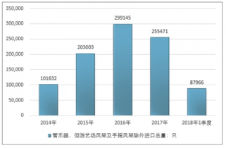 2016年我國管樂器,但游藝場風琴及手搖風琴除外進口總量299145只 ,2017年進口總量255471只 ;2018年1季度進口總量87966只 。