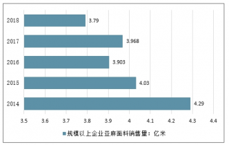 2014-2018中國年規模以上企業亞麻面料銷售量走勢