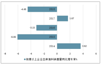 2014-2018中國年規模以上企業亞麻面料銷售量同比增長率