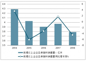 2014-2018中國年規模以上企業亞麻面料銷售量及增長走勢