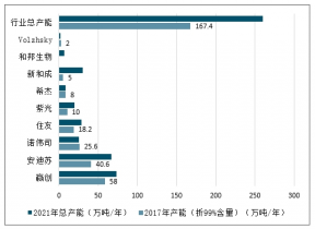 (萬噸/年) | 2017年產能(折99%含量) | 產能分布 | 2019年新增產能 | 2019年新增產能 | 2020年新增產能 | 2021年新增產能 | 2021年總產能 |