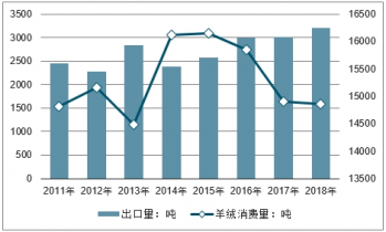 2019年我國羊絨行業(yè)產(chǎn)量18002.22噸,進(jìn)口量約65噸,出口量約3207.6噸,國內(nèi)羊絨行業(yè)表觀消費(fèi)量約14859.62萬噸。