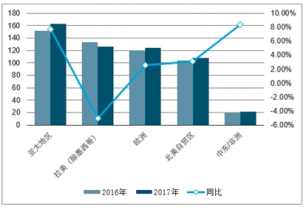 全球各地農藥市場銷售額(億美元)