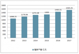 2012-2017年中國健身產(chǎn)業(yè)產(chǎn)值走勢