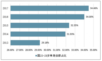 2013-2017年中國25-29歲單身族群占比情況