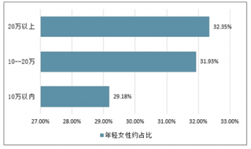 2017年收入10萬以上的年輕女性約占比情況