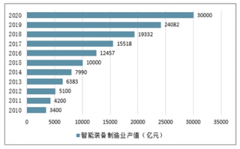 中國智能裝備制造業產值(億元)