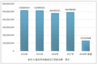 2016年我國壓力/差壓變送器進出口貿易總額481405257美元,2017年進出口貿易總額494786000美元;2018年1季度進出口貿易總額132167848美元。