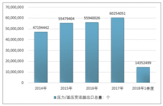 2016年我國壓力/差壓變送器出口總量55940026個 ,2017年出口總量60254051個 ;2018年1季度出口總量14352499個 。