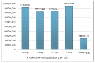 2016年我國氣體或煙霧分析儀進出口貿易總額840597175美元,2017年進出口貿易總額950259785美元;2018年1季度進出口貿易總額244690149美元。