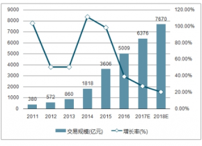 2011-2018年中國母嬰用品線上交易市場規(guī)模及增長率走勢