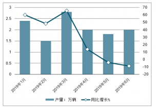 2019年上半年插電式混合動力汽車產(chǎn)量及同比增長