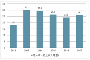 2012-2017年我國(guó)芯片設(shè)計(jì)行業(yè)收入增長(zhǎng)走勢(shì)