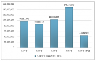 2016年我國人造關(guān)節(jié)出口總額103085255美元,2017年出口總額148231579美元;2018年1季度出口總額44542909美元。