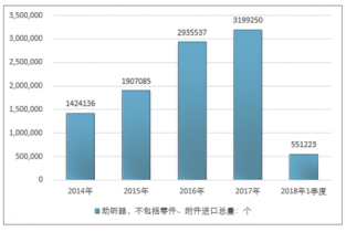 2016年我國助聽器,不包括零件、附件出口總額389253682美元,2017年出口總額377386944美元;2018年1季度出口總額71590891美元。