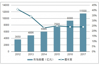 2012-2017年中國物聯(lián)網市場規(guī)模及增長率