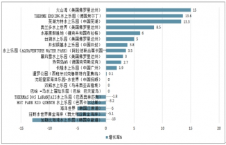 水上樂園 | 所在地 | 入園游客:萬人次 | 增長率% |