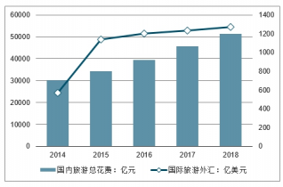 2014-2018年國內(nèi)旅游總花費(fèi)及國際旅游外匯收入走勢(shì)