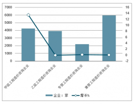 2019年中國共有8139家工程造價咨詢企業參加了統計,比上年增長4.3%。其中,甲級工程造價咨詢企業4236家,增長13.4%;乙級工程造價咨詢企業3903家,減少3.9%。專營工程造價咨詢企業2207家,增長12.5%;兼營工程造價咨詢企業5932家,增長1.6%。