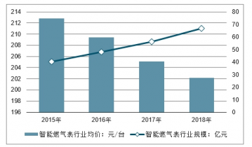 2015-2018年中國智能燃氣表行業均價及規模情況