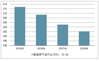 2015-2018年中國智能燃氣表行業均價走勢情況